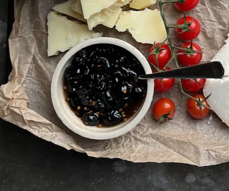 In terms of my fridge, the weekend I moved in I made sure to make some jams and chutneys to have on hand (and because it was Christmas and we ate lots of cheese). I made 2 batches of mulled wine jam, cranberry sauce, as well as some candied jalapeños (duh) and candied olives. Let’s not forget the essential salted vanilla syrup…
